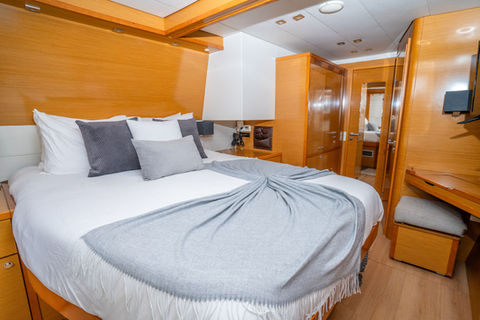 Aboard AMURA, you'll find 3 queen staterooms, each with an ensuite bathroom and walk-in shower, accommodating up to 6 guests in comfort. The suites feature beautiful natural lighting and efficient use of space.